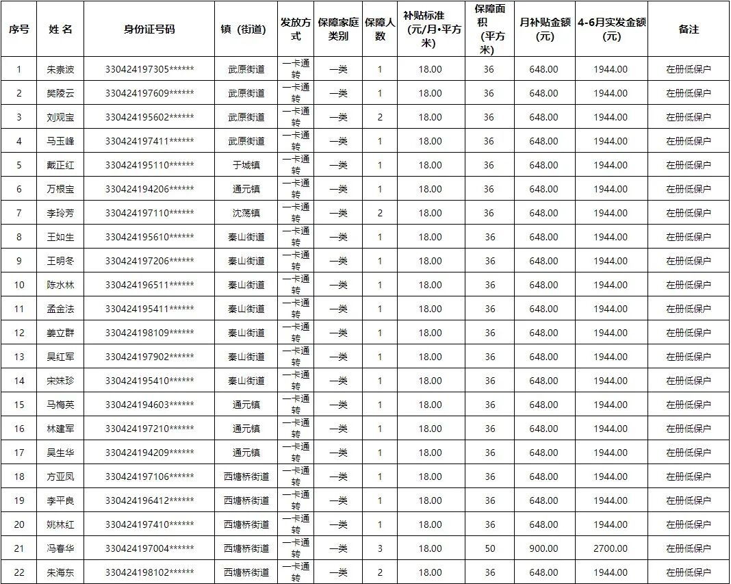 以上是部分名单,海盐县公共租赁住房租赁补贴发放公示名单详情请点击此处查看